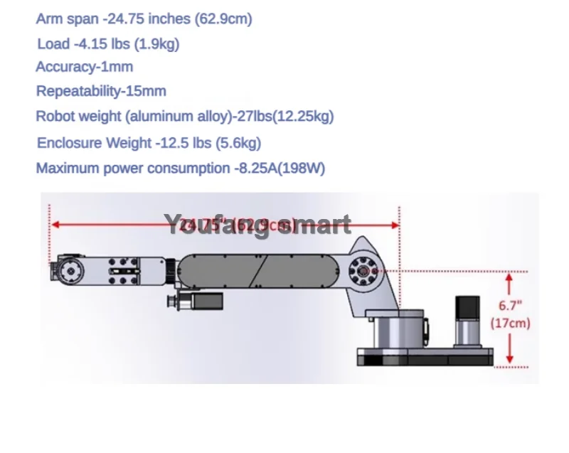 – Total weight of robot arm 18kg/39.68 lbs
